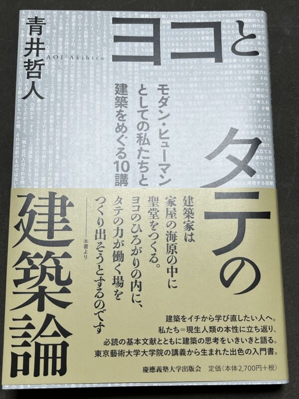 そして「ヨコとタテ」これは建築のプロポーションなどの表面的な話ではなく、相違をヨコ・類似をタテと捉えて考える様な思想的な話になっています。これにより建築を考えるのに影響を与える事柄を、建築内外から説明できる様になっています。最初の方は概念的な事だから分かりやすいのですが、読み進めるにつれて複雑になっていきます。最初に書いた通り通年講義の様な構成なので、途中からだとそれまでの話が分からないのでついていけないと思います。